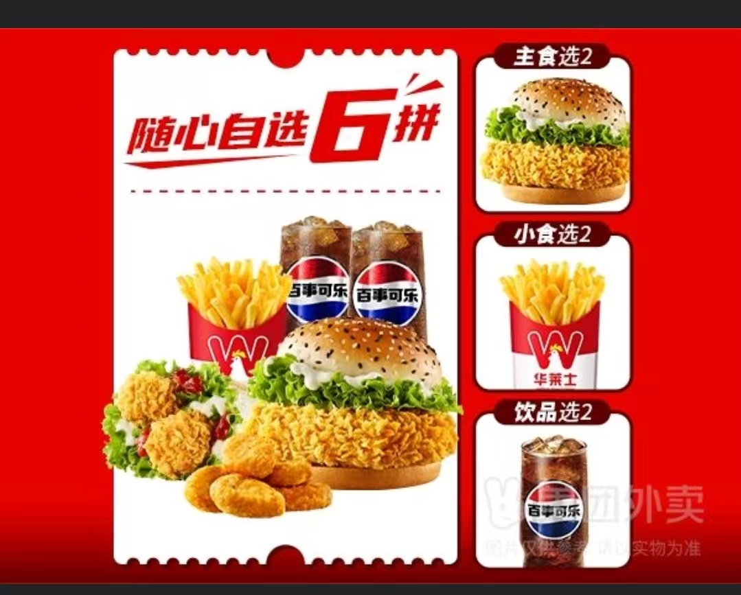 【随心6拼】汉堡×2+小食×2+饮品×2